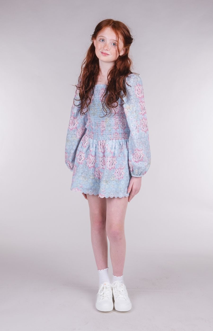 She may seem shy at first, but her kindness and quiet confidence draw people in. She loves soft colors, puffed sleeves, and thoughtful details —polished and styled with that extra feminine touch.  She’s ready to join the laughter or offer a heart full of grace.