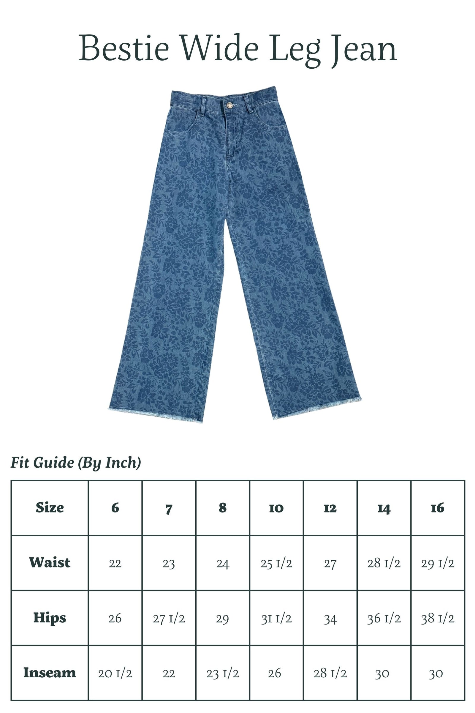 The go-to jean that’s reliable, trusted, and true-blue – just like her bestie. The Bestie Wide Leg Jean is crafted from soft, lightly structured denim designed to move comfortably while still holding its shape. Finished with a subtle tonal print, this full-length mid-rise style is easy to mix and match with everything she loves. Thoughtful details like an interior adjustable waistband and raw-edge hem make it relaxed, comfortable, and endlessly wearable.