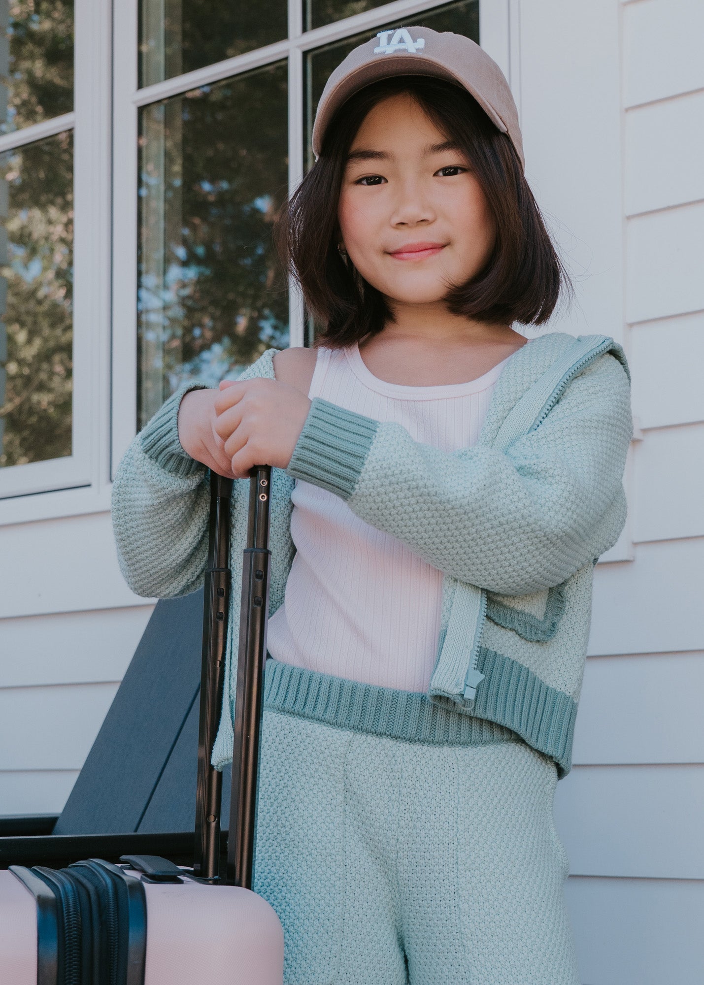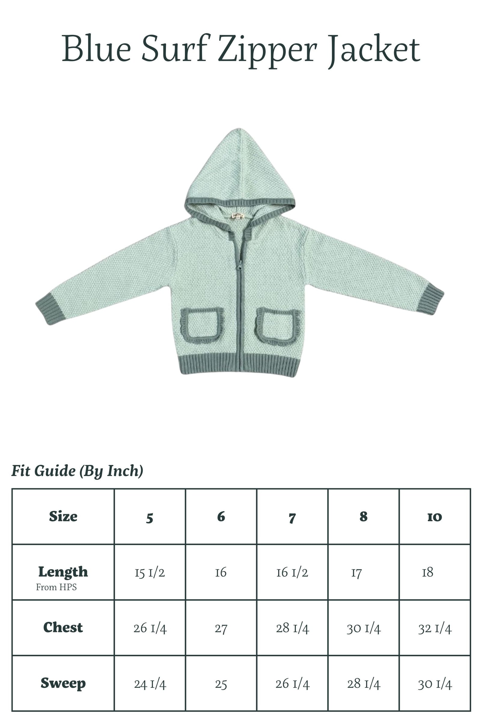 Part sweater. Part jacket. Completely hers. The Blue Surf Zipper Jacket is a cozy seed-stitch knit sweater jacket designed for everyday spring adventures. Featuring a hood, contrast rib cuffs and hem, scalloped pocket details, and a full zip front, it’s the relaxed, lightweight layer she’ll grab for the transition to spring temps and beyond.