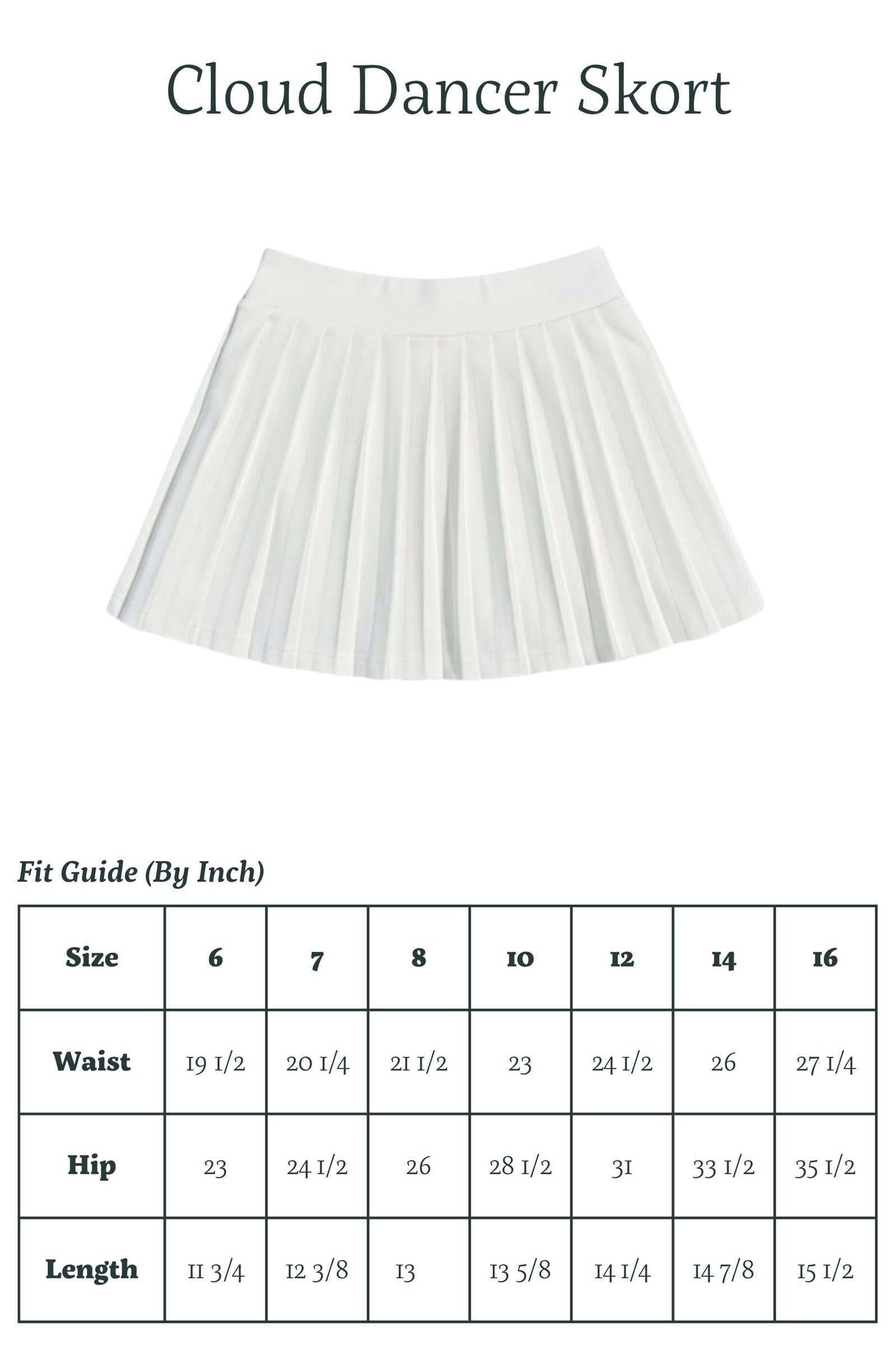 Preppy, sporty, and made to move. The Cloud Dancer Skort is crafted from soft, high-stretch performance fabric designed to breathe and keep up with her day. Finished with a pleated skirt, built-in shorts, and a smooth comfortable waistband, it offers confidence in motion.