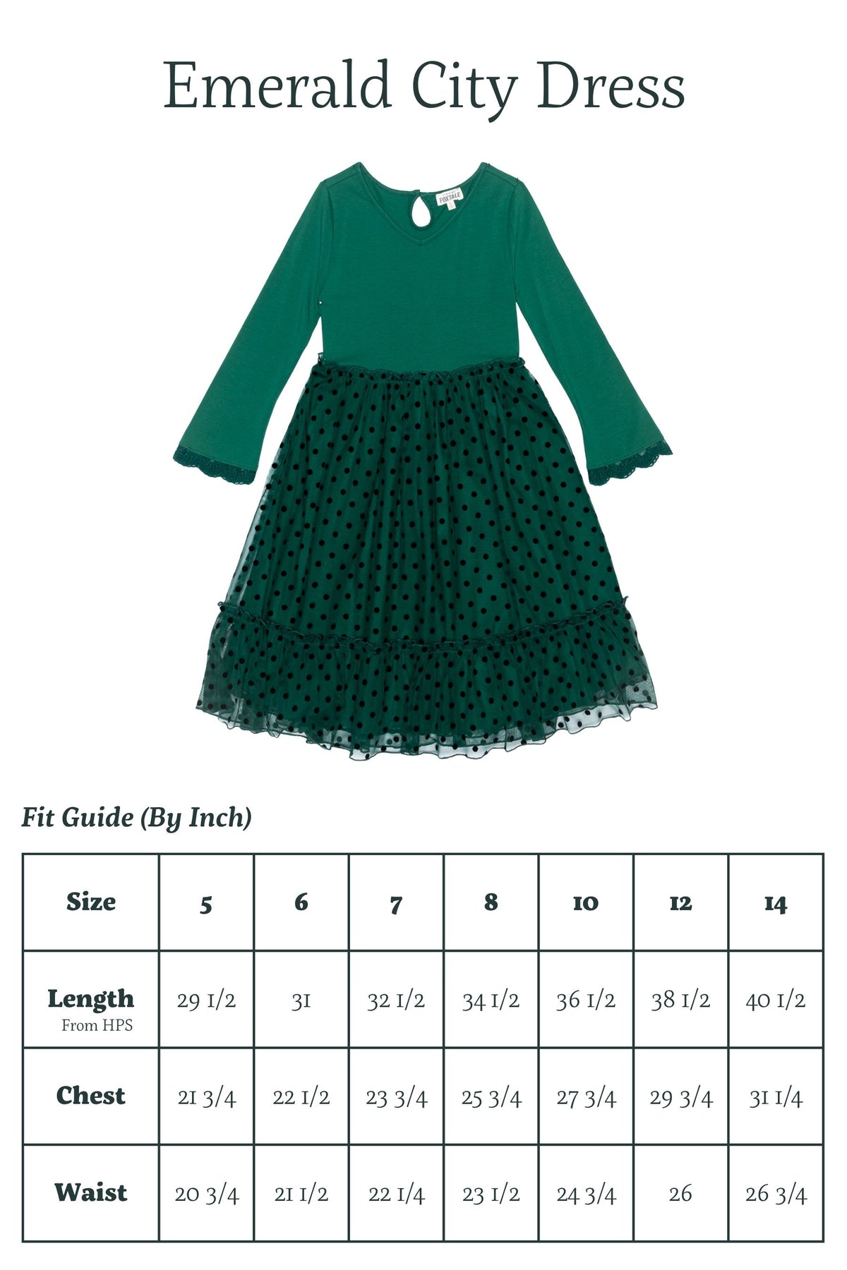 For the girl who knows there’s a little magic in standing out, the Emerald City Dress brings confidence with a hint of enchantment. Its deep green hue and velvet-flocked tulle skirt were made to twirl, while the soft jersey bodice and lace sleeves keep it perfectly polished and comfortable. A look fit for her own fairytale — no wand or yellow brick road required!