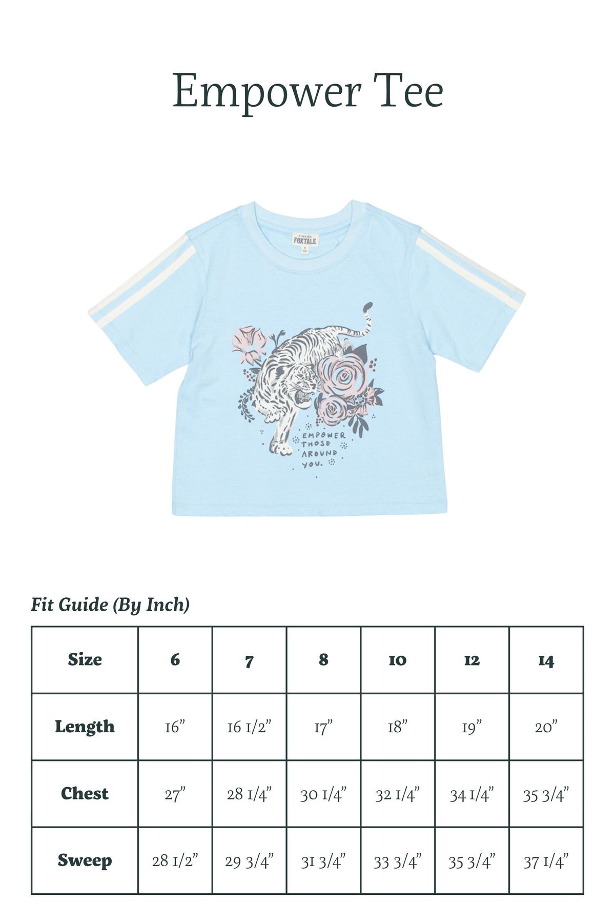 For the girl who leads with kindness and confidence. This 100% cotton tee is soft, breathable, and made to move with her. A custom graphic reminds her to “Empower those around you,” while off-white sleeve stripes add a subtle sporty edge. Style it with the Garage Band Bottoms for a look that’s laid-back, strong, and cool.