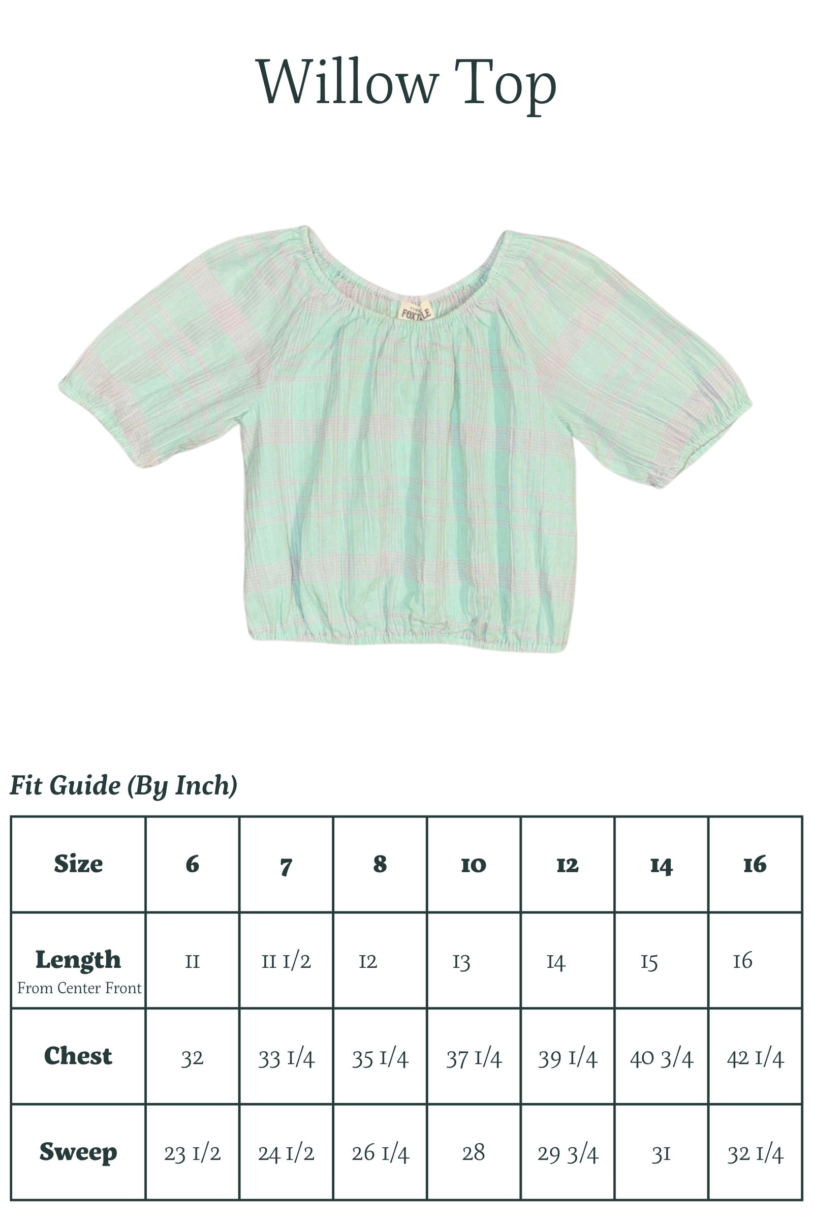 The Willow Top is crafted from yarn-dyed plaid with a lined bodice for comfortable, confident coverage. Designed in an easy peasant-style silhouette, elastic details create a flexible fit that moves with her while maintaining a soft, polished shape. Designed as part of a set, it pairs perfectly with the matching Willow Skirt or can be styled with the Zoey Chambray Pants for a more relaxed look. A versatile spring piece she can dress up or down with ease.